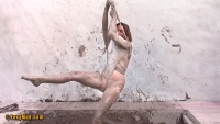 Aurel est nue et boueuse. Elle enfile des collants, mais seulement pour s'y retrouver complètement emprisonnée. Elle déchire ses collants et avec un maillot de bain elle est suspendue jusqu'à le déchirer .. c'est jouissif ! Durée 18:53