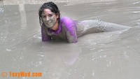 Tania se salit entièrement avec son zentaï. Elle se rince, enlève la tête, se suspend au dessus du bassin et retombe encore dans la boue ... c'est vraiment beaucoup de plaisir a voir le lycra mouillé et boueux ! Durée 16:00