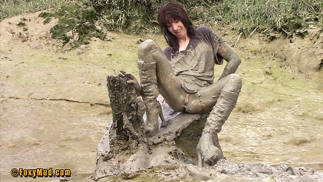 Julia est nue sous son pull et a des bottes en cuir. Elle est grande, fine, et s'aventure dans la boue avec ses bottes. Julia s'amuse sur un tronc d'arbre au milieu de la boue, ses jambes boueuses sont merveilleuses. Durée 15:12