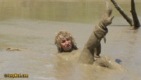 Yulia roule et s'éclabousse dans cet espace de boue chaude et liquide ... un grand plaisir et un fantasme total avec sa robe en cuir et toujours ses bottes . Durée 15:13
